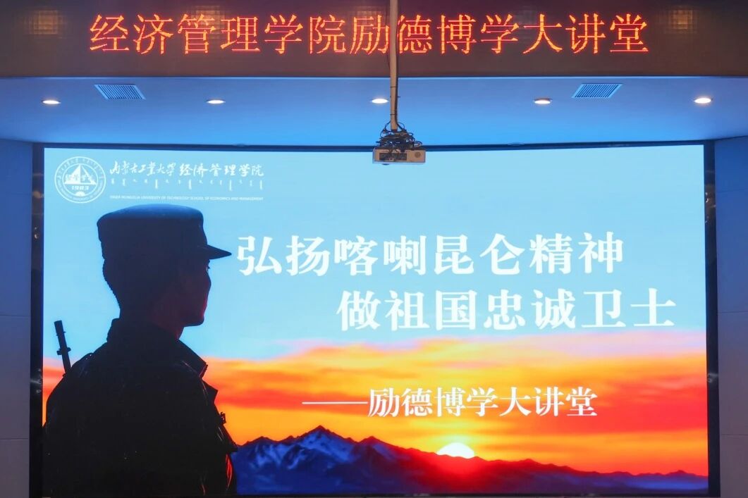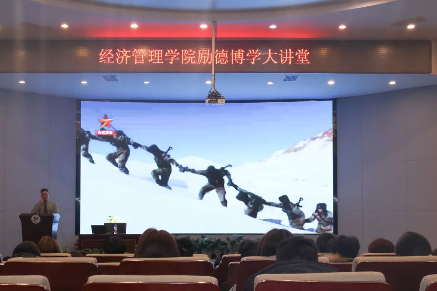 为深入落实“立德树人”根本任务,将爱国主义教育融入青年学子成长血脉,11月16日,经济管理学院邀请原喀喇昆仑高原戍边战士、学院2025级研究生李茂走进“励德博学大讲堂”,在图书馆报告厅开展“弘扬喀喇昆仑精神 做祖国忠诚卫士”主题讲座。学院团委副书记吴宏宇老师与各班级学生代表共同聆听,在英雄故事中接受思想洗礼,厚植家国情怀。