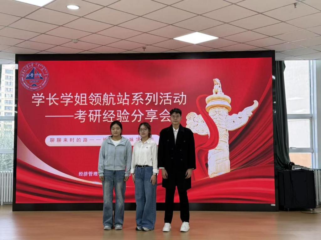 10月18日,经济管理学院“学长学姐领航站”考研经验分享会在一站式社区四楼中央大厅顺利举行。活动邀请我院2025级研究生徐青青、张鑫和付博,三位学长学姐,围绕择校策略、备考方法与心态调整等核心议题展开分享,为我院本科学子备战考研提供实用指导。