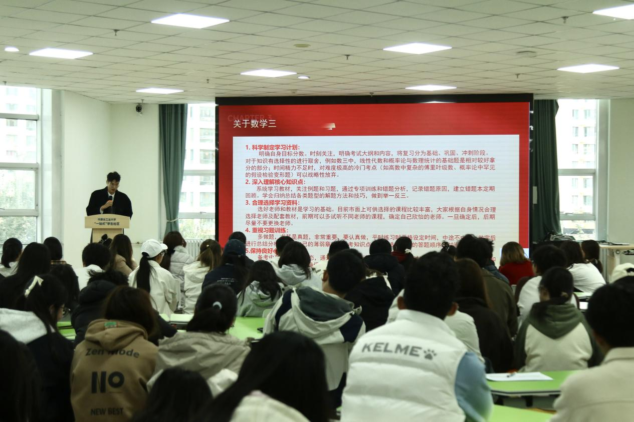 整场分享内容详实、针对性强,现场同学认真聆听、积极互动,纷纷表示收获颇丰。活动在主持人真诚的感谢与鼓励中圆满结束,为同学们的考研征程注入信心与动力,传递了坚持拼搏、互助共进的积极精神。