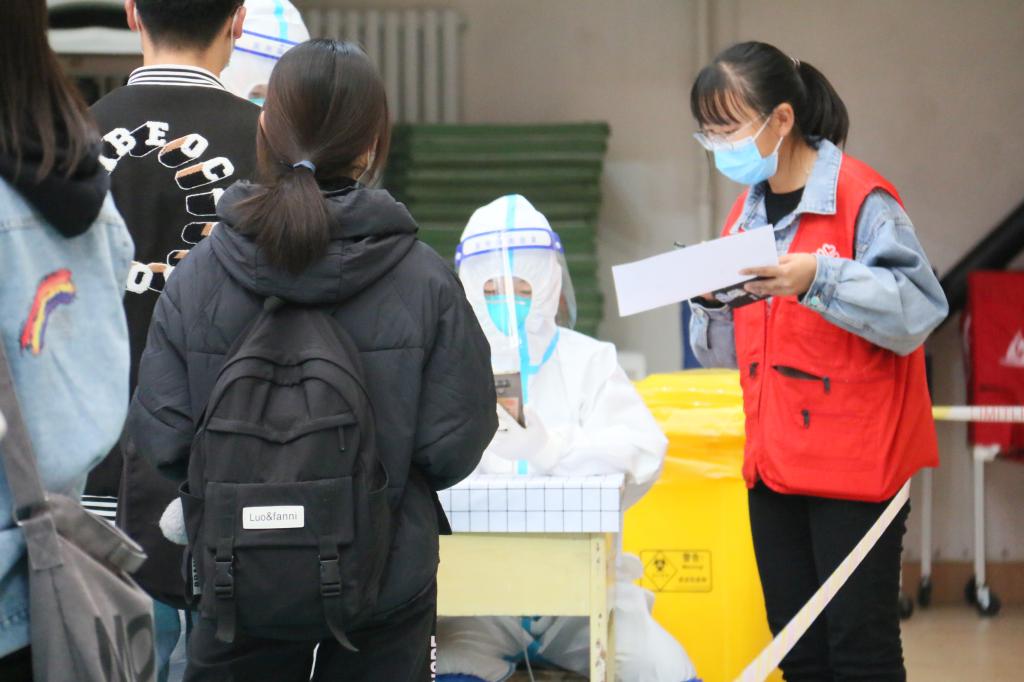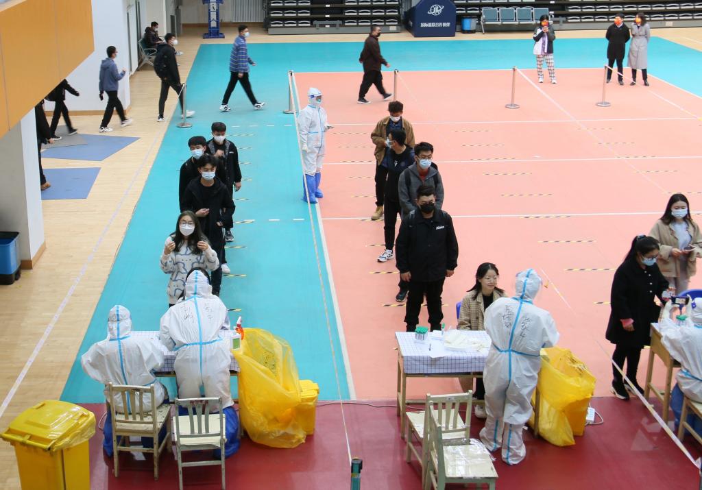 此轮核酸检测仅用两个小时完成。检测前,学院制定精细方案,画出展位图,确定检测顺序等。检测中,在团委、学生会同学的引导及帮助下,全体师生自觉佩戴口罩,遵守秩序,严格落实“一米线”距离,有序等待检测。医务人员严格按照检测规范流程进行扫码登记、核酸采样、环境消杀等工作。