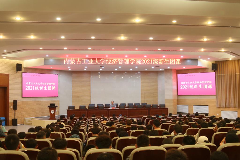 10月7日下午,经济管理学院于第三教学楼报告厅举办2021级新生团课。学院团学办公室副主任,团委副书记贾国辉老师主讲,学院全体2021级新生参加。