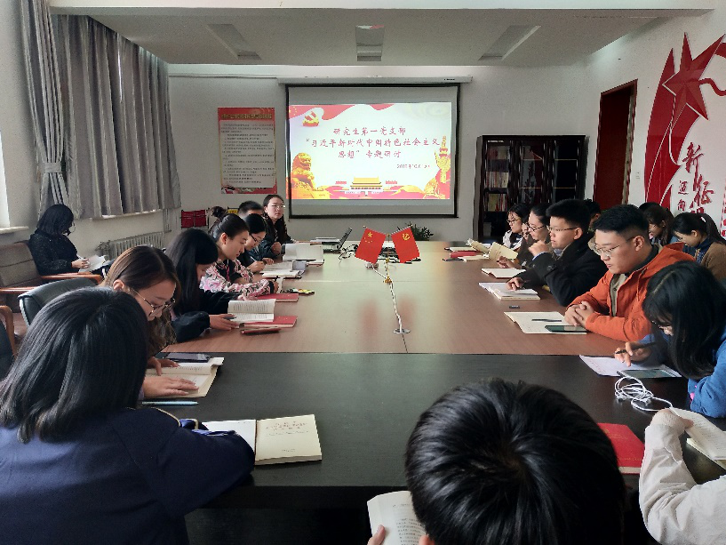 10月15日上午,研究生第一党支部组织党员在主楼219教师进行了以“习近平新时代中国特色社会主义思想”为主题的学习研讨会。支部全体学生党员参会,结合学习内容开展学习体会交流。