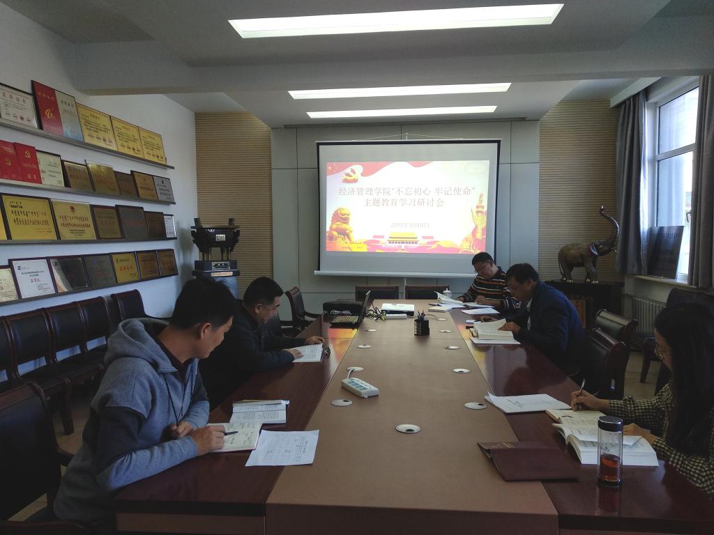 10月8日上午,经济管理学院党委中心组“不忘初心、牢记使命”主题教育第二次集体学习会在新城校区主楼317会议室召开,会议由学院院长长青主持。院领导班子参加了会议。
