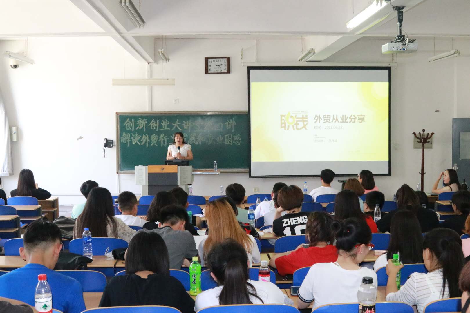 系列创新创业讲座的举办激发了同学们创新创业的勇气和信心,使同学们受益匪浅,达到了专业认知效果。让同学们对所学专业的发展及就业等有了更深入的了解,对未来的就业形势有了更加明确的认识,为确定学习目标提供了一定的指导作用。通过此次系列讲座,同学们能够在以后的学习工作中不断努力学习专业知识,掌握必备素质,完善自我,积极投身到外贸行业的时代潮流,实现自己的人生价值。