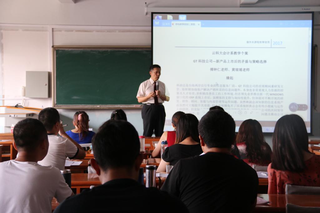 7月2日,内蒙古工业大学管理学院MBA学员与台湾云林科技大学12名EMBA学员在我校进行了移地教学活动,台湾云林科技大学会计系的傅钟仁、黄琼瑶两位教授为主讲教师,活动为期一天。而为了使我院学员对课程更好的了解和掌握,我院的部分老师也共同参与了此次活动。
