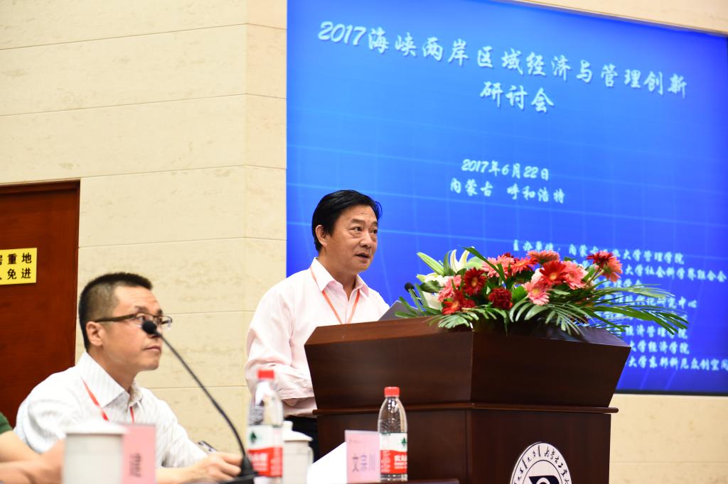 6月22日,由管理学院、校社科联主办的2017海峡两岸区域经济与管理创新学术研讨会在教研楼第二报告厅隆重举行。校党委委员、副校长刘进荣教授、台湾淡江大学会计系主任黄振豊教授,颜信辉教授、林谷峻教授、单佩玲助理教授,内蒙古大学经济管理学院院长杜凤莲教授,内蒙古财经大学经济学院院长郝春虹教授,我校学术委员会主任委员李长青教授,管理学院院长长青教授,党委书记王利明,党委副书记、副院长张建出席会议。管理学院全体教师及研究生参加会议,管理学院副院长文宗川教授主持。