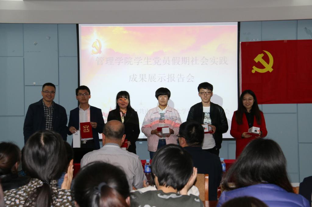 为贯彻落实党的十八大和十八届三中、四中、五中、六中全会精神和习近平总书记系列重要讲话精神,按照“两学一做”学习教育的要求,管理学院分党委在今年寒假组织全体学生党员开展了以“十八大以来家乡的新变化”为主题的社会实践活动,学生党员们利用假期,深入家乡开展社会调查研究,撰写调研报告。为深化活动成果,管理学院分党委于2017年4月10日晚在主楼329举办了学生党员假期社会实践成果展示报告会。学院领导王利明、长青、张建、文宗川、王秀丽出席本次报告会并担任评委。