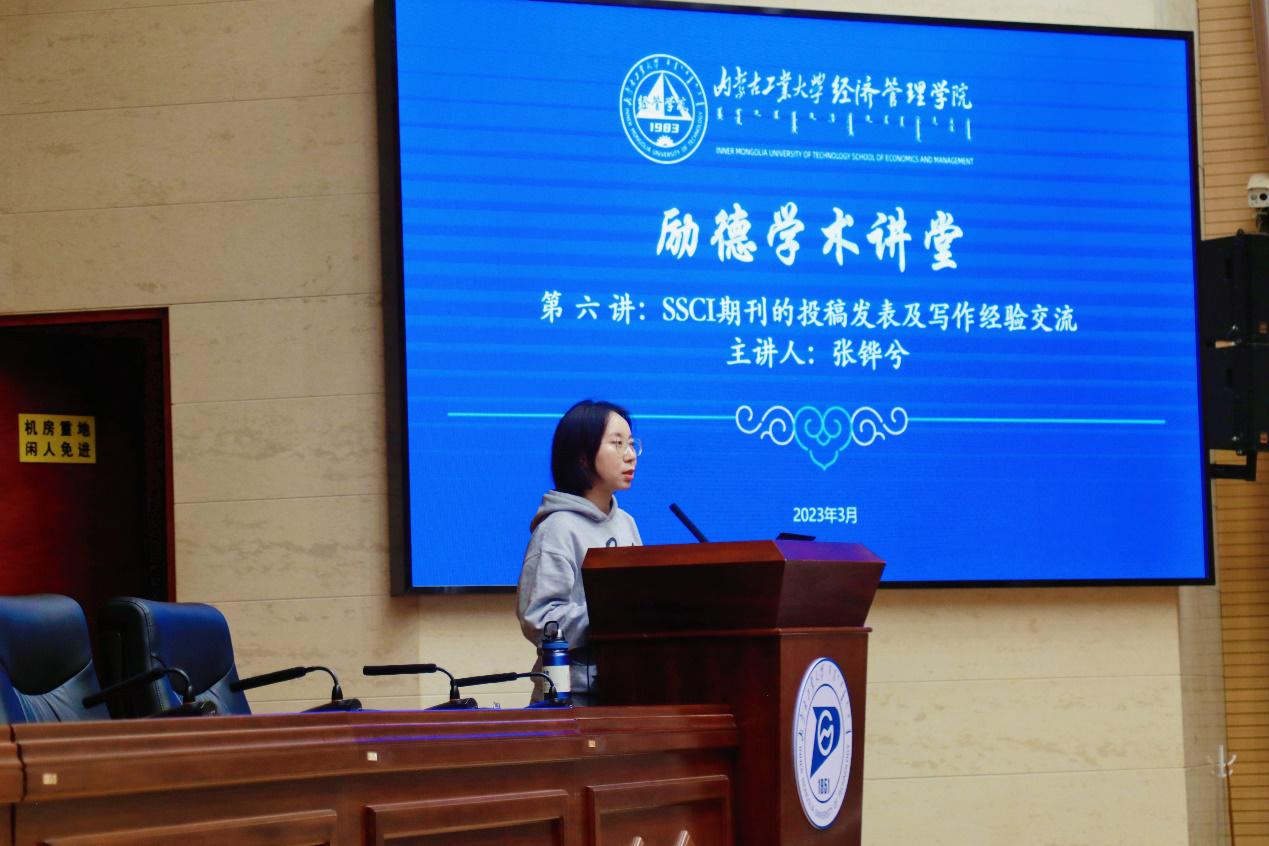 2023年3月5日下午,经济管理学院在明德楼第二报告厅举办 “励德学术讲堂·第六讲”——《SSCI期刊的投稿、发表及写作经验交流与分享》主题讲座,讲座由北京理工大学助理研究员、清华大学五道口金融学院兼职研究员张铧兮博士主讲。文宗川老师主持会议。