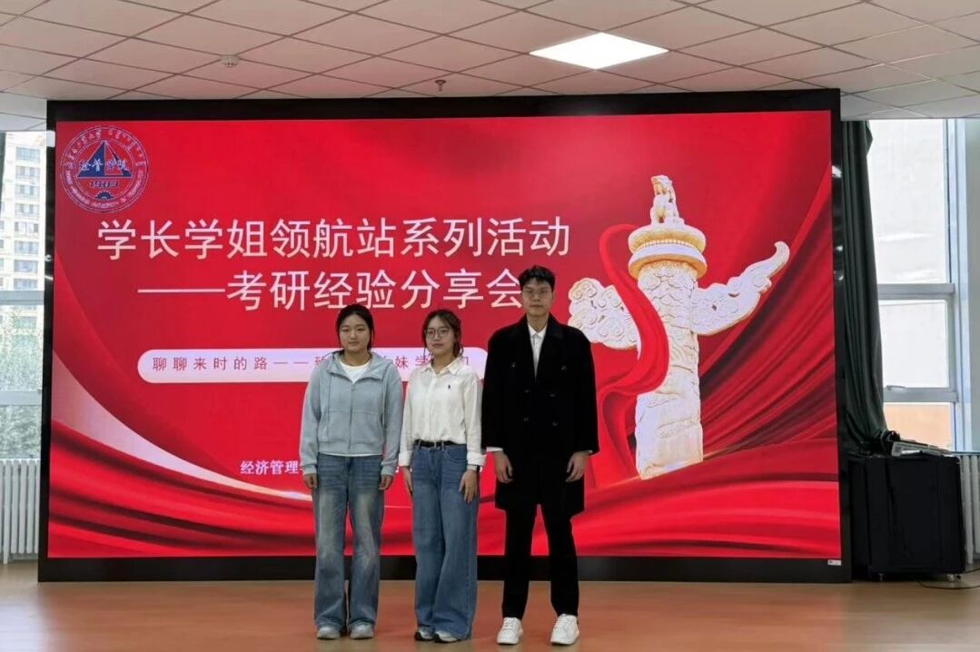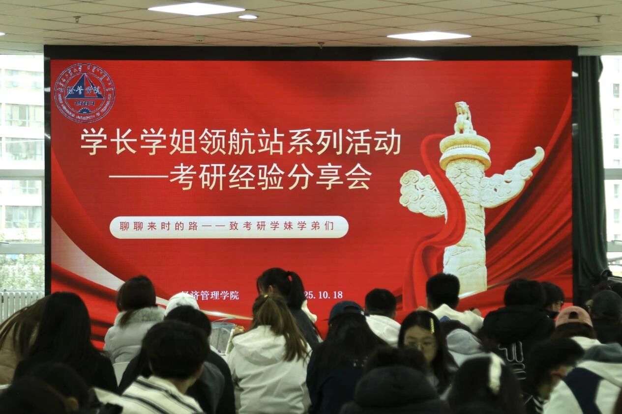 10月18日,经济管理学院“学长学姐领航站”考研经验分享会在一站式社区四楼中央大厅顺利举行。活动邀请我院2025级研究生徐青青、张鑫和付博,三位学长学姐,围绕择校策略、备考方法与心态调整等核心议题展开分享,为我院本科学子备战考研提供实用指导。