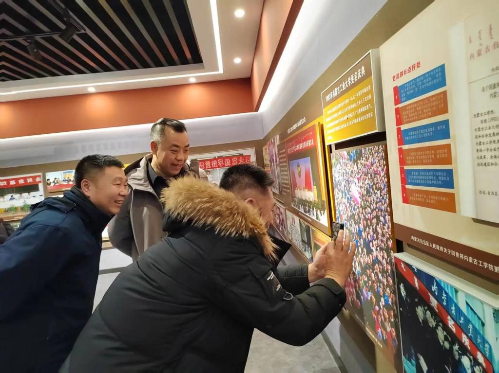 近日,我院管91校友、中信银行天津分行纪委书记张建强、内蒙古农牧业厅法规处处长李向前返校走访,学院党委书记祁龙和校友工作委员会办公室主任乔洪滨陪同。校友们参观了曾老师塑像、院训石、校友照片墙等承载着记忆的场所,走访了内蒙古“新质生产力与中国式现代化”研究基地和内蒙古企业管理研究重点实验室,祁龙书记通过详实的图文资料、动态的数据分析以及生动的案例展示,系统介绍了经济管理学院发展历程以及在教学科研方面的一系列成果。在校史馆,大家系统地参观了学校的发展历程、办学成就、名师风采。大家驻足在1993年学校更名的照片前,激动地寻找着当年的自己和相熟的同学,比较毕业后的变化。