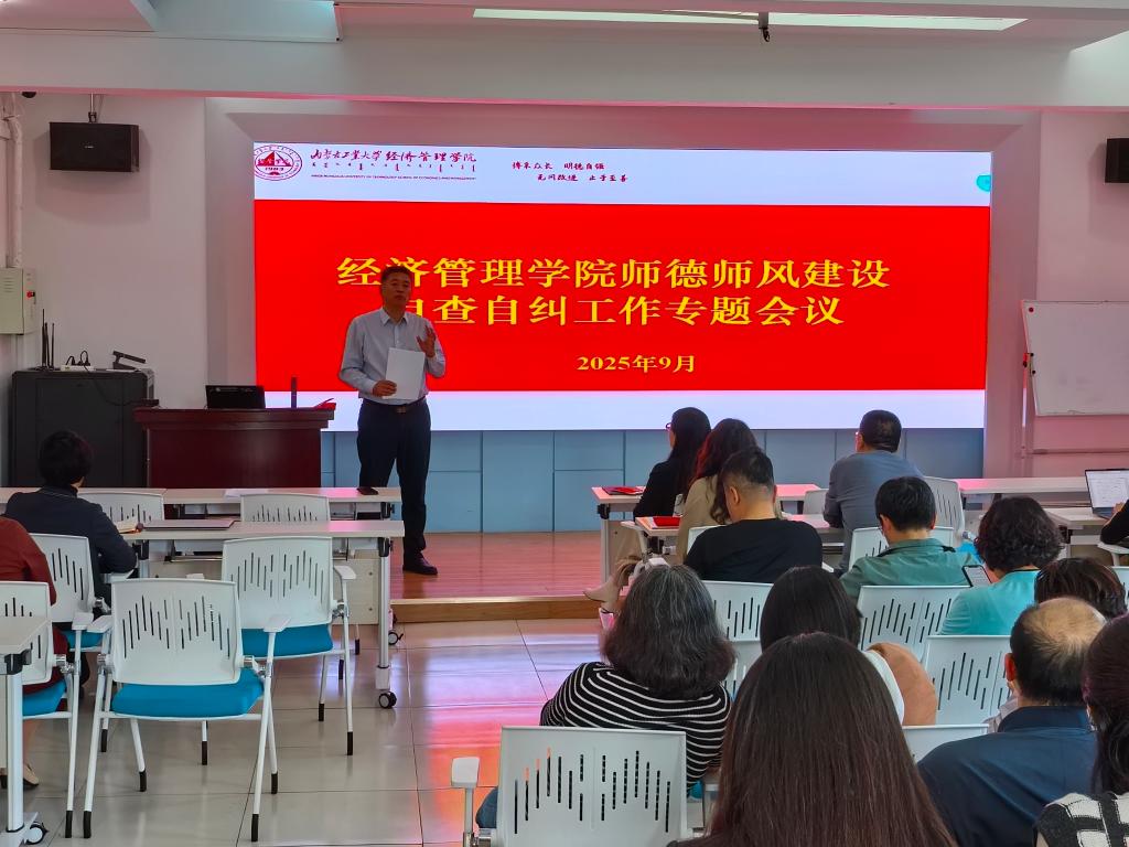 按照学校《关于开展学校2025年师德师风行为规范自查自纠工作的通知》要求,2025年9月29日下午3时,经济管理学院于主楼329召开师德师风自查自纠专题会议。学院全体党员教师参会,学院党委书记祁龙主持会议并作工作部署。